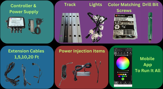 We provide a complete kit with everything you need—controller, power supplies, durable LED lights, colored track, and all the necessary cables. Simply attach the track, plug in the lights, and enjoy vibrant illumination in no time, no extra parts, no hassle. Pick the length of kit you need along with the color of track to match your home and you are ready to go! If you require more than 200ft please reach out to us for a custom quote